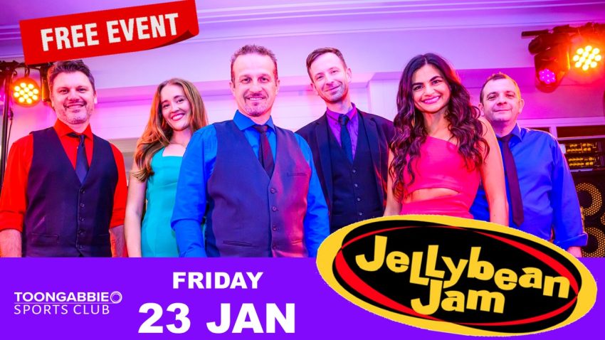 Deliciously tasty, full-flavoured hits of yesteryear combined with scrumptious servings of current chart fillers have given Jellybean Jam a recipe for success and has established them as Australia’s hardest working corporate party act. Non-stop medleys ensure non-stop dancing complete with tongue in cheek interpretations of the most memorable party tunes. Doors 8.30pm.